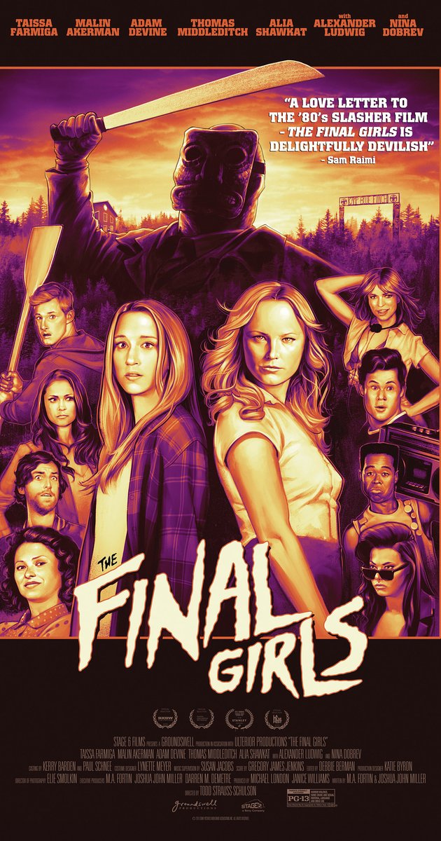 Today we wrap up Final Girls Week with my favorite meta-horror film about the subject, Todd Strauss-Schulson’s The Final Girls, starring Taissa Farmiga, Malin Ackerman, and Adam DeVine. I had the pleasure of seeing this movie in early 2015 at the Stanley Film Festival, where it won the audience choice award for best film. The Final Girls surprised the audience because it was so unexpectedly funny and sweet, and actually left many viewers openly weepy.