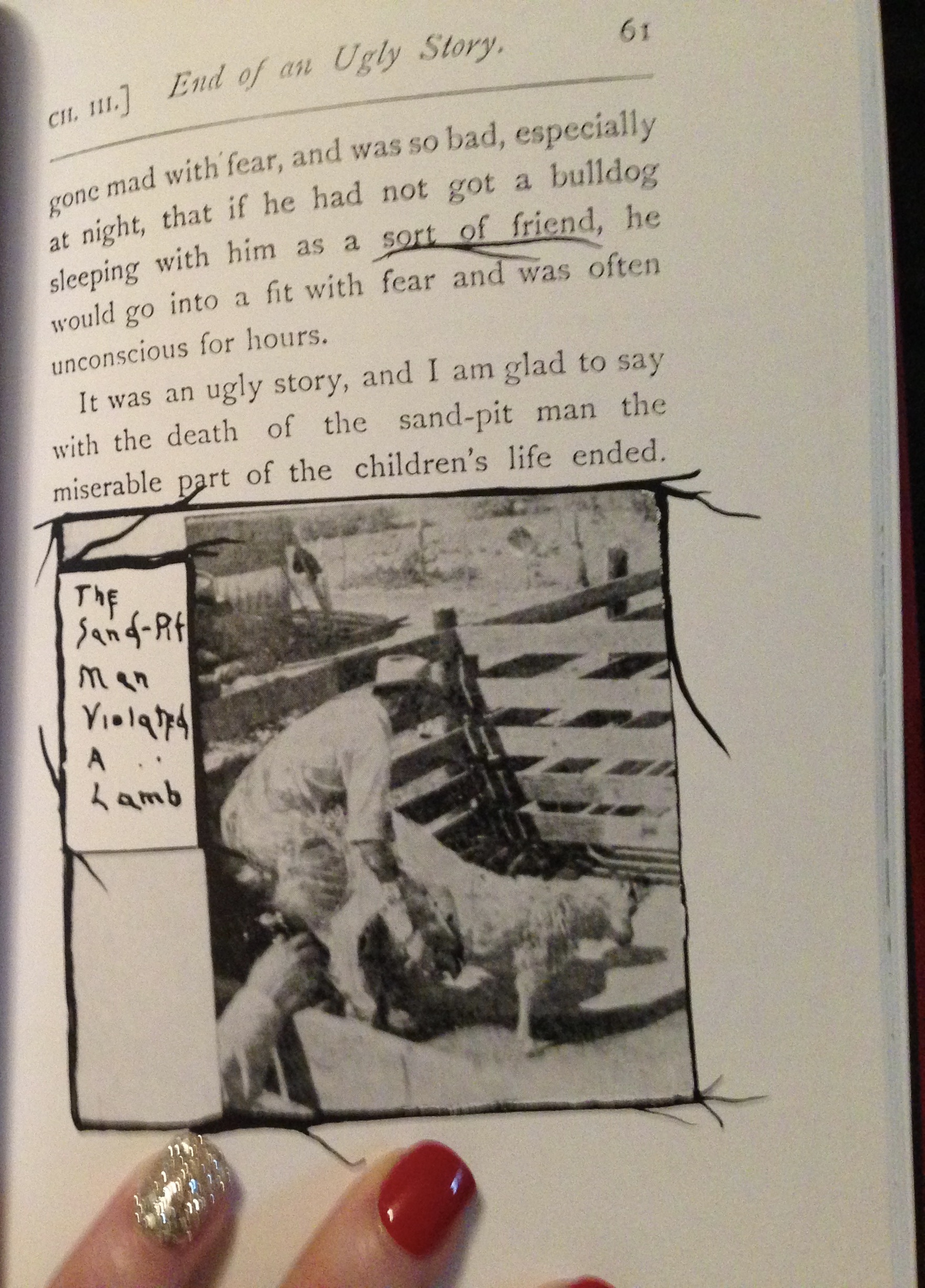 This isn’t to say that Crispin’s artistic output isn’t eccentric or massively weird, because it is. If you have the opportunity to attend both nights, do so. There is some overlap in content but not so much as to be overly redundant. Both nights began with variations of “Crispin Hellion Glover’s Big Slide Show,” in which Crispin crawled out from somewhere beneath the stage (literally) and then presented dramatic reading of several of his books accompanied by a powerpoint presentation of the book text and illustrations. Most of Crispin’s books consist of Victorian-era texts and illustrations, which have been redacted, recombined, and annotated in ways that transform the narrative entirely, usually making it funny or into absolute nightmare fuel. For example, “Rat Catching” contains a surprise reference to bestiality. Other books, such as “Round My House,” consisted of Crispin’s original text, reprinted from his own handwriting. This was my favorite among the books available for purchase at the event and on his website. The others were out of print or never printed for distribution in the first place. My favorite among these was “The Backward Swing.” Crispin’s dramatic reading style most often further mutated or obfuscated the meaning of the text, because he would often read with an emotion that didn’t seem to fit the text, or would read in a counter-intuitive cadence or put emphasis on atypical words. I enjoy the books themselves, but would argue that they are best experienced when performed by Crispin himself.