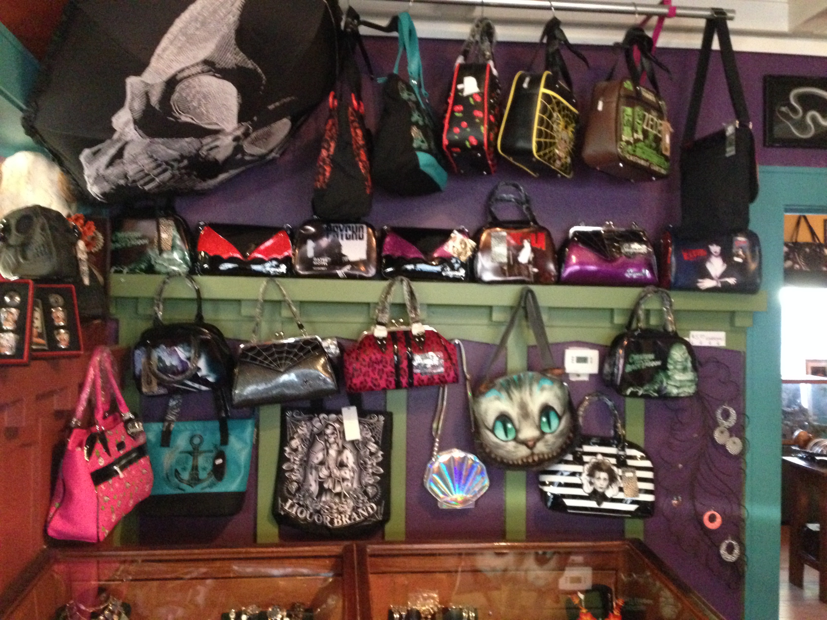 One of several original art pieces on display at Dreadful ThingsDreadful Things has an element of visual overloadA few of the goodies available for purchase. I picked the Cheshire Cat purse.