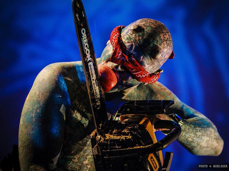 But the most shocking things happened during the late night performances, starting with burlesque artist Marlo Marquise, who combined a striptease act with stunts similar to those performed by The Enigma earlier in the day. But then she went a few steps beyond his performance by balancing on machetes and piercing her own skin with metal skewers. Her other acts include fire-eating, a “burlesque on hooks” suspension act, and balancing on a staircase of machetes. You can watch clips of her performances at her website (NSFW).