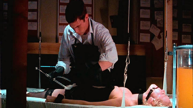 Love Object is also one of many films that criticize the pornographic fallacy, that is, the phallocentric assumption that the desire of women is to fulfill the sexual desires of men, no matter how brutal or perverse. The feminist notion that pornography distorts men’s perceptions of women is illustrated by protagonist Kenneth’s visit to a porn shop, a scene that takes on a hallucinatory quality as he becomes increasingly entranced by the sight of silicone- enhanced, eager women and the prospect of sadistic and exotic sexual acts. But then there is a sharp jump-cut back to reality, which is a cruel shock—Kenneth is surrounded by real women, who are often dumpy-looking, pregnant, elderly, and/or generally disinterested in sex.